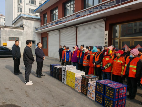 在第二十九届环卫工人节来临之际,为向辛勤奉献的环卫一线工人致以节日问候,同时筑牢冬季清运冰雪工作防线,王士强市长带队深入环卫作业现场,开展慰问活动并检查清运冰雪设备准备情况,住建局常务副局长孙野陪同。