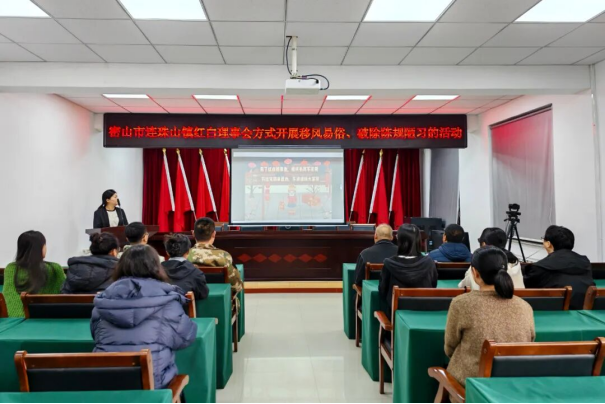 商讨结束后,连珠山镇启动移风易俗集中宣传活动,通过案例分享、政策解读、观看视频等方式,向村民普及文明节俭办红白事的理念,倡导婚事新办、丧事简办,弘扬厚养薄葬、文明祭扫等新风尚。