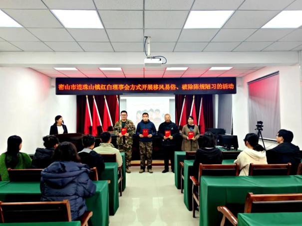 为从源头遏制大操大办、铺张浪费,密山市连珠山镇以红白理事会方式开展移风易俗、破除陈规陋习活动会。活动充分发挥道德评议会的监督引导作用,将道德评议会与红白理事会建设有机结合,推动红白理事会规范运行。