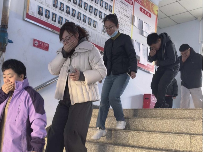 疏散过程中,大家严格遵循“弯腰捂鼻低姿行”“沿墙撤离寻出口”等逃生要诀,用手捂住口鼻,低姿前行,沿着疏散通道快速、有序地撤离。