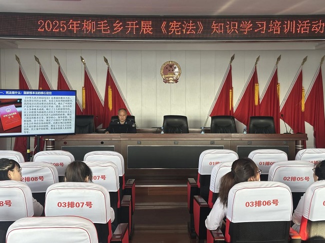 专题培训强本领,提升法治素养。组织全乡机关干部开展《中华人民共和国宪法》知识学习培训活动。邀请司法所所长通过专题讲座、案例分析等形式,系统讲解宪法的基本原则、修改历程以及新时代宪法实施的重大意义,引导基层工作人员准确把握宪法精神实质,提升运用法治思维和法治方式解决问题、服务群众的能力,为推进乡村治理法治化奠定坚实基础。