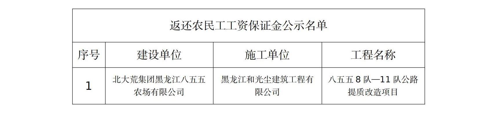 根据《工程建设领域农民工工资保证金规定》(人社部发〔2021〕65号)文件要求,现对返还农民工工资保证金的1个工程进行公示,如工程项目中有存在拖欠农民工工资行为的,请及时到密山市人力资源和社会保障局劳动监察部门举报投诉。公示期满,如不存在工资拖欠问题投诉举报的,密山市人力资源和社会保障局将按规定程序返还农民工工资保证金。