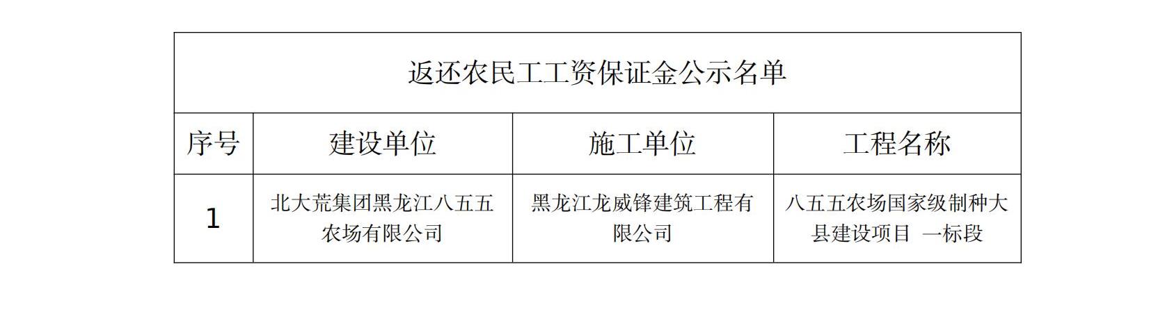 根据《工程建设领域农民工工资保证金规定》(人社部发〔2021〕65号)文件要求,现对返还农民工工资保证金的1个工程进行公示,如工程项目中有存在拖欠农民工工资行为的,请及时到密山市人力资源和社会保障局劳动监察部门举报投诉。公示期满,如不存在工资拖欠问题投诉举报的,密山市人力资源和社会保障局将按规定程序返还农民工工资保证金。