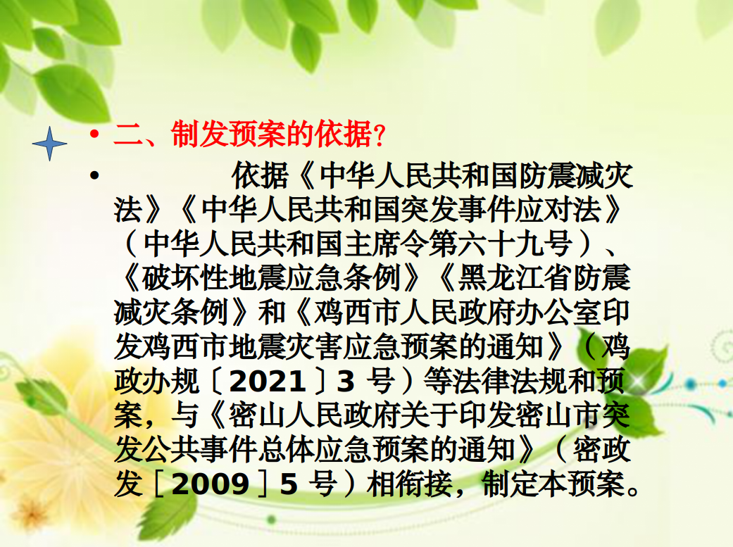 关于印发《密山市干旱灾害应急预案》《密山市非煤矿山事故应急预案》《密山市危险化学品事故应急预案》《密山市自然灾害救助应急保障预案》《密山市地震灾害应急预案》的政策解读