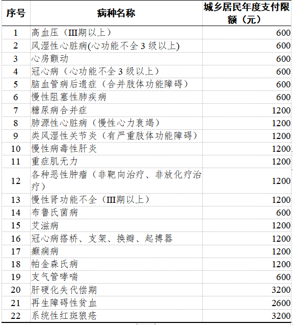 城乡居民慢性病待遇一览表