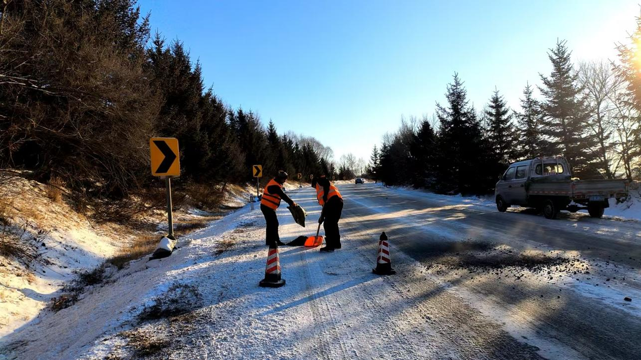公路事业发展中心闻雪而动,迅速启动冬季清雪保通、防滑保畅应急预案,保障人民群众出行安全。养护部门坚持“机械为主、人工为辅”的作业模式,科学调配除雪设备与人力。截至12月24日9时00分,密山市公路事业发展中心共出动养护人工累计38人次,出动机械设备累计14台班,撒布融雪剂累计67吨,防滑料25立方米,清除积雪4万立方米,清理国省公路4条,里程208.124公里,清理农村公路9条,里程261.538公里,目前各管养路段正常通行。重点对桥梁匝道、急弯陡坡、易发生事故道口等高风险路段强化处置,全力遏制路面结冰。