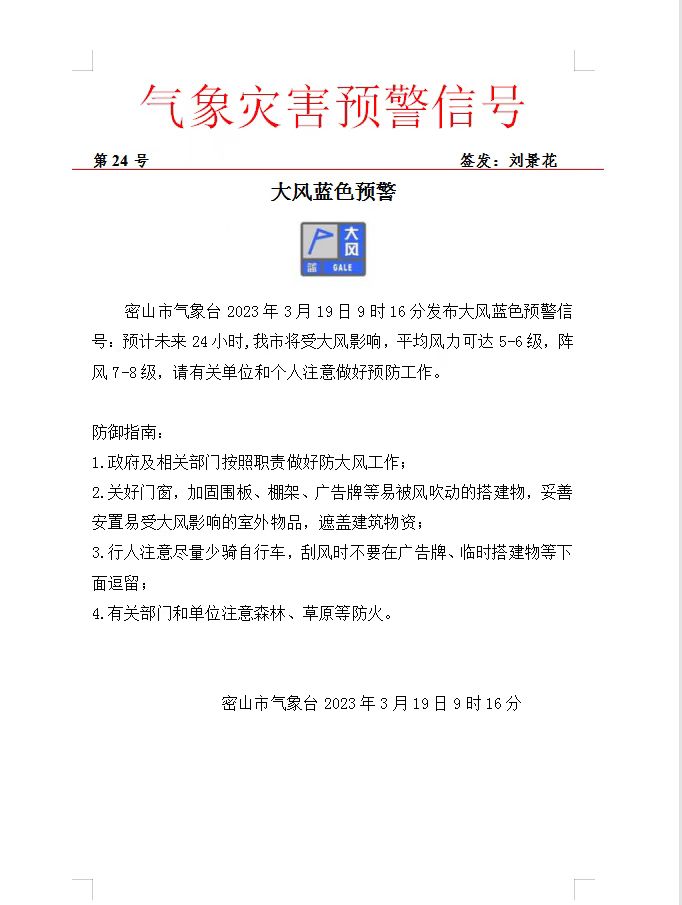气象灾害预警信号-202303180916-密山市-第24期-大风蓝色预警信号