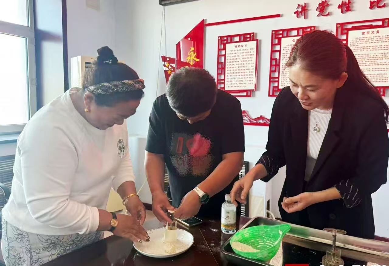 活动现场,志愿者与村民们齐聚一堂。工作人员向大家介绍中秋节的文化内涵与传统习俗,并现场示范制作月饼的步骤,从和面的手法、馅料的调配到包制和烤制的技巧,都一一细致讲解。大家热情高涨、分工协作,有的专注揉制馅料,确保口感细腻;有的细心擀制面皮,力求厚薄均匀。欢声笑语间,一块块造型精致、香气四溢的月饼新鲜出炉。