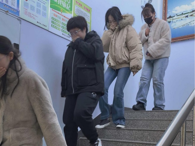 疏散过程中,大家严格遵循“弯腰捂鼻低姿行”“沿墙撤离寻出口”等逃生要诀,用手捂住口鼻,低姿前行,沿着疏散通道快速、有序地撤离。