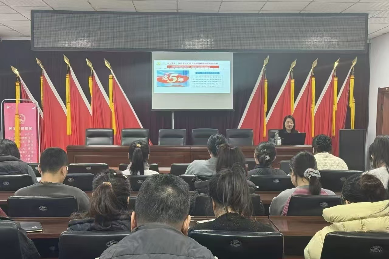 宣讲中,麦忠薇老师以《在接续奋斗中谱写中国式现代化新篇章》为主题,从“十四五”时期我国经济社会发展取得的历史性成就切入,深入解读了全会的重大意义与战略部署,系统阐释了中国式现代化在“十五五”时期的实践路径与任务要求,并结合基层工作实际,就如何贯彻落实全会精神、将宏伟蓝图转化为生动实践提出了指导建议。整场宣讲主题鲜明、逻辑清晰、联系实际,既有理论深度,又有实践厚度,为全乡党员干部全面、准确、深入理解全会精神提供了系统辅导。