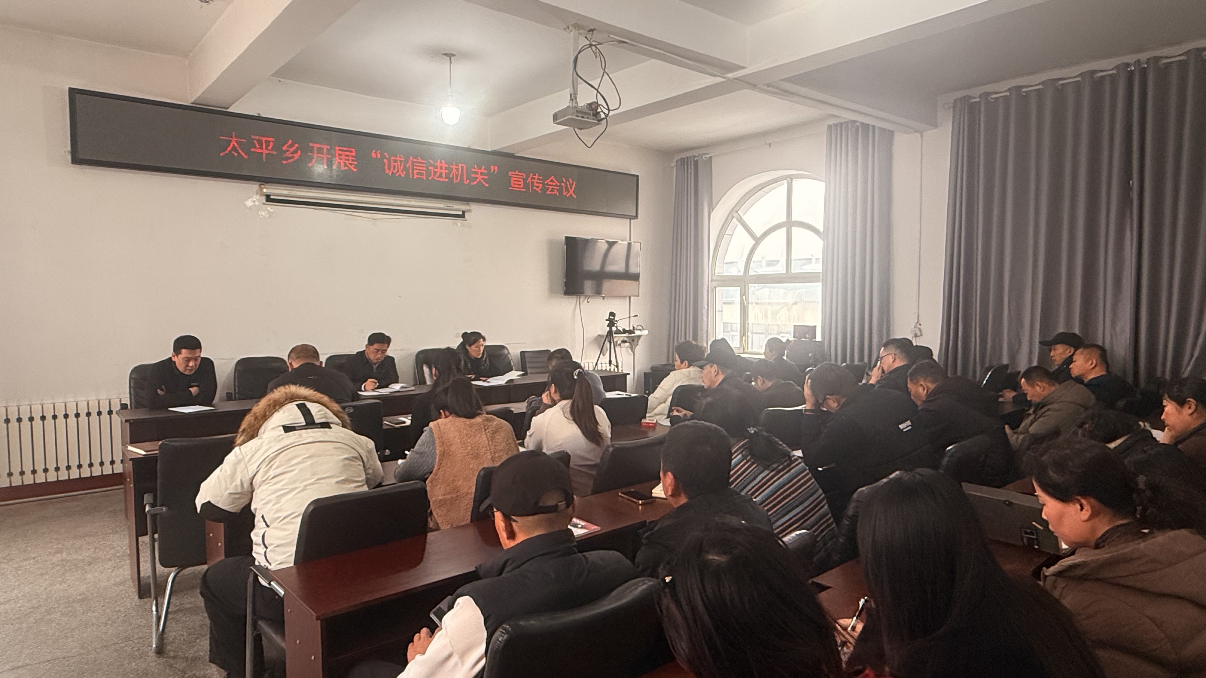 为推进政务诚信建设,锤炼务实清廉作风,近日,太平乡组织召开“诚信进机关”主题宣传会议,全体机关干部参会,共筑诚信履职、服务为民的政务新风。