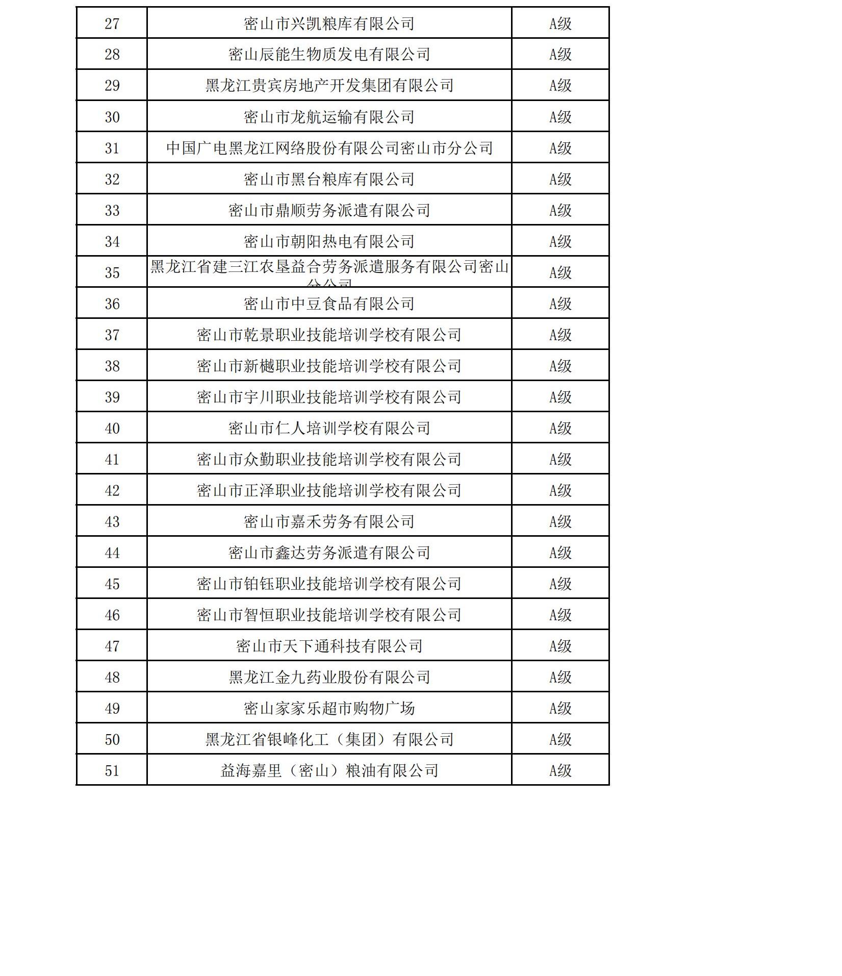 根据《黑龙江省企业劳动保障诚信等级评价实施办法》规定及市优化营商环境守信践诺专班要求,在全市范围内组织开展2024年劳动保障书面审查和诚信等级评价工作。经申报、审核、征求意见等程序,现将2024年市本级用人单位劳动保障诚信等级评价结果公示如下: