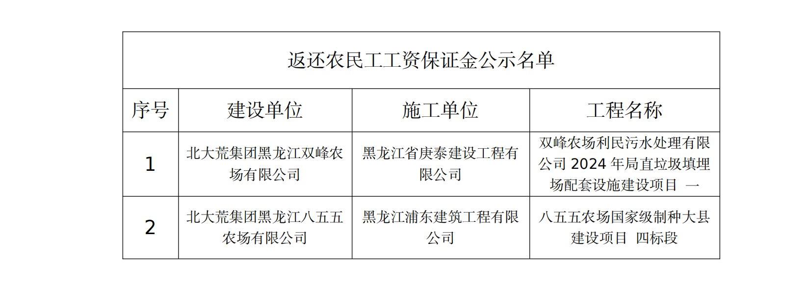 根据《工程建设领域农民工工资保证金规定》(人社部发〔2021〕65号)文件要求,现对返还农民工工资保证金的2个工程进行公示,如工程项目中有存在拖欠农民工工资行为的,请及时到密山市人力资源和社会保障局劳动监察部门举报投诉。公示期满,如不存在工资拖欠问题投诉举报的,密山市人力资源和社会保障局将按规定程序返还农民工工资保证金。