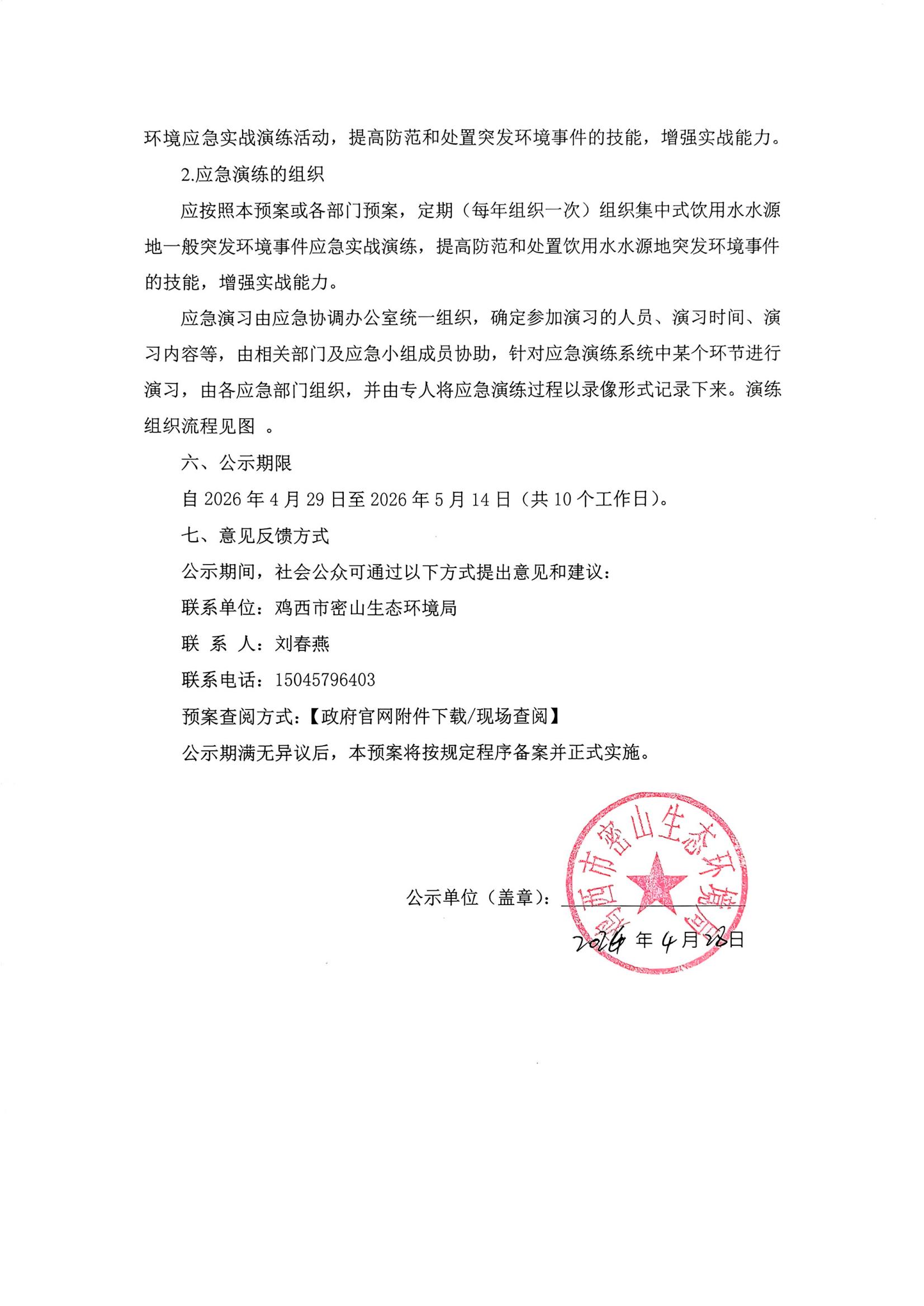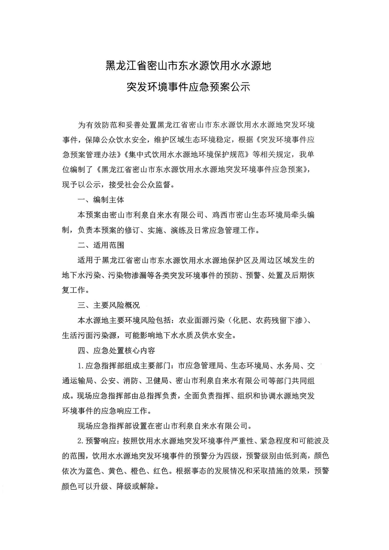 黑龙江省密山市东水源饮用水水源地突发环境事件应急预案公示