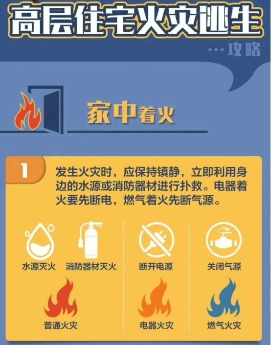 2.遇火不慌、不贪财物、不乘电梯,低姿弯腰捂口鼻撤离。