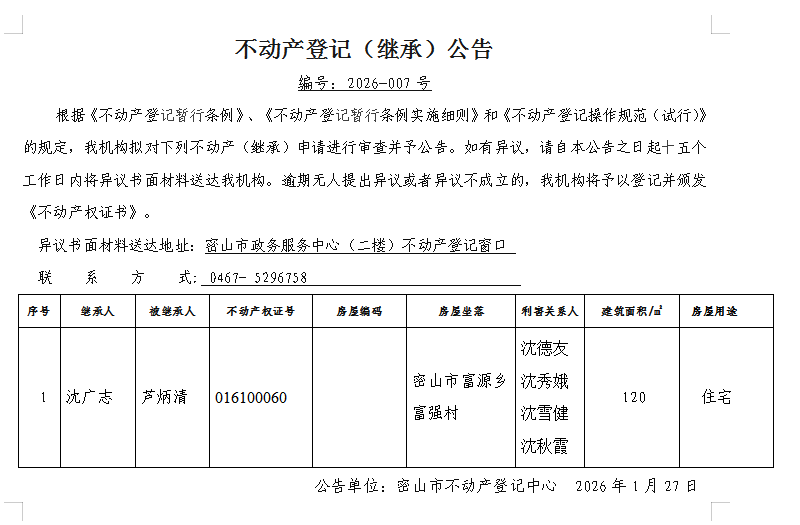 不动产登记(继承)公告编号:2026-沈广志