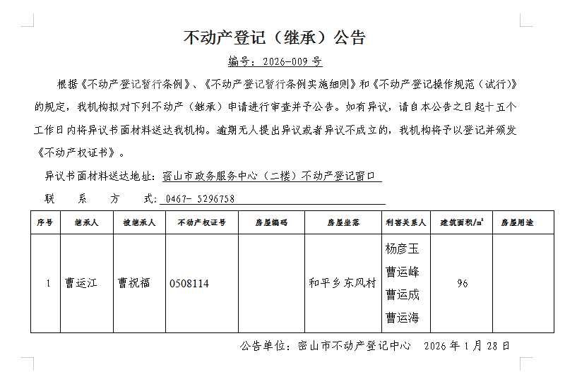 不动产登记(继承)公告编号:2026-曹运江