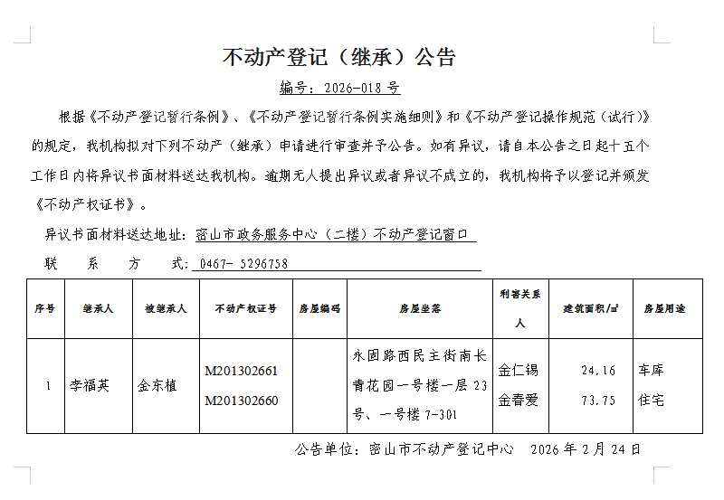 不动产登记(继承)公告编号:2026-李福英