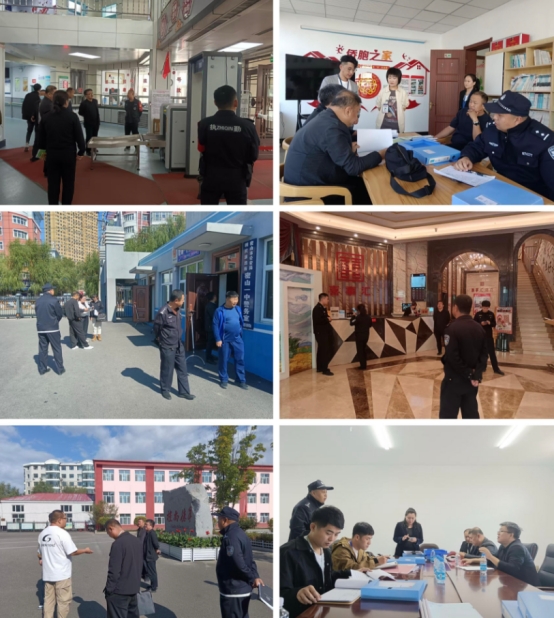 由政法委牵头,组织公安局、消防大队、教育局、应急局及市监局多部门联合对市六中、中、四中、宏伟社区、阳光社区、兴亚及人民医院等场所进行安全检查。