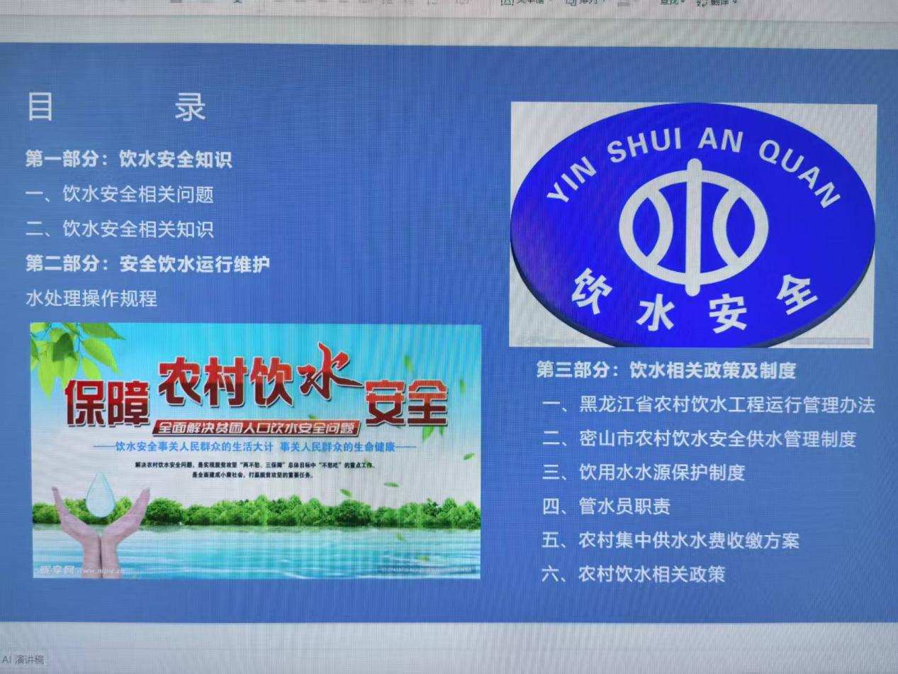 11月末,密山市组织全市驻村干部、第一书记和市委组织部人员等120多人在市委党校集中开展农村饮水安全及运维培训工作。