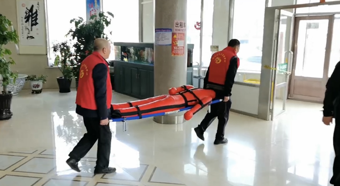 疏散引导组作为此次演练的核心力量,严格遵循“生命至上、安全第一”原则,全面落实“一人一策、责任到人、包保到户”的工作机制,针对失能老人无法自主行走、反应迟缓等特点,提前划分责任区域,安排专人对接。演练中,工作人员分工协作,熟练使用担架、轮椅等疏散工具,采取搀扶、抬运、护送相结合的方式,一对一、手把手协助失能老人沿预设的安全疏散通道快速有序撤离至园区空旷安全地带,随后逐一清点人数,确保无一人遗漏。整个演练过程紧张有序、衔接顺畅,各小组配合默契、处置规范,充分展现了扎实的应急处置素养。随后,密山市宏泰养老院、密山丞芮老年人照料中心也开展了失能老人一对一转移的应急演练。