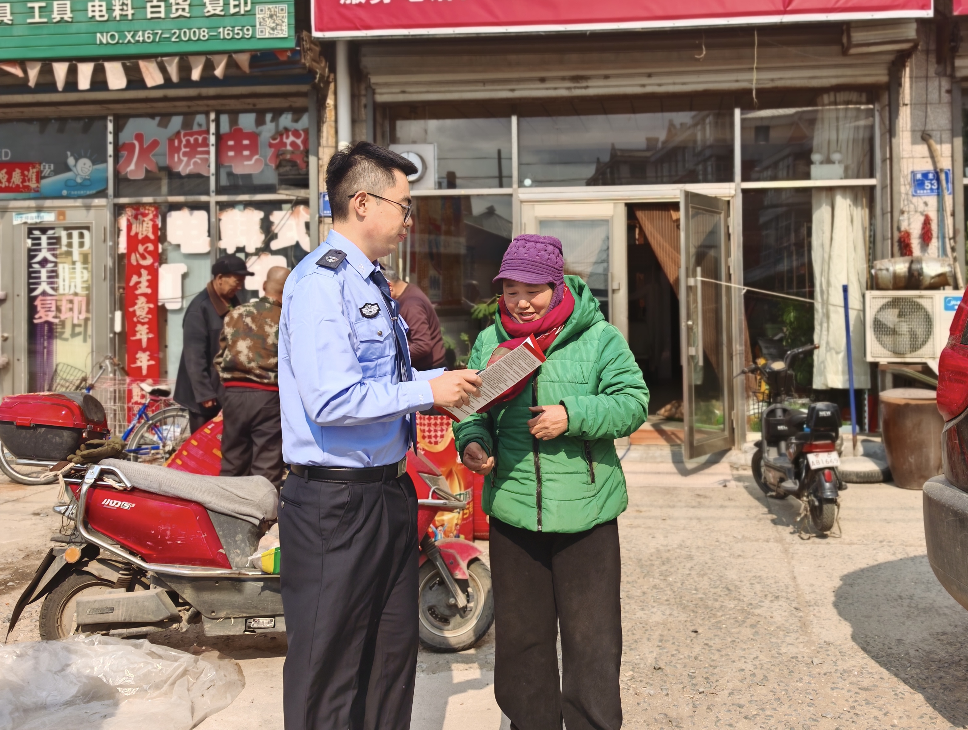群众利益无小事,一枝一叶总关情,活动中,工作人员围绕农户春耕生产实际需求,用贴近农村生产生活的案例,重点宣传讲解《中华人民共和国农村土地承包法》《农药管理条例》《中华人民共和国消费者权益保护法》等法律法规。针对农资选购,工作人员提醒广大群众,购买化肥及农药等要选择正规商家,仔细查看产品信息,拒绝“三无”产品,主动索要并保管好票据,遇到假劣农资、消费侵权时,通过合法渠道理性维权。围绕土地承包、土地流转、灌溉用水等常见问题,工作人员耐心细致讲解法律规定,引导群众通过人民调解、法律咨询等方式化解矛盾,做到依法办事、和睦相处,切实减少邻里纠纷。同时,结合春季安全工作,同步宣传森林防火、秸秆禁烧、道路交通安全、电信诈骗防范等内容,提醒群众严守安全底线,自觉遵守法律法规,守好生产安全和“钱袋子”。