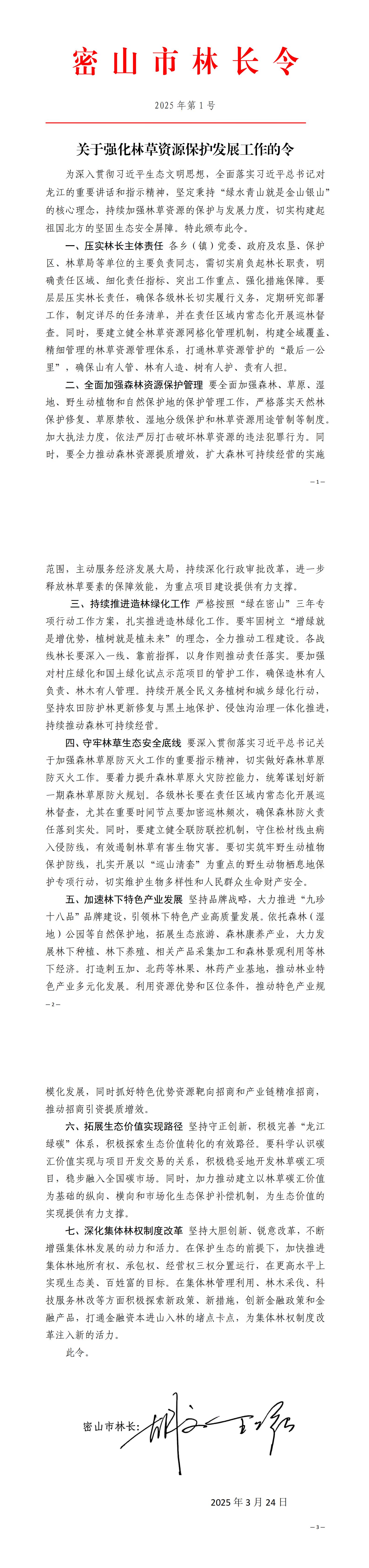 关于强化林草资源保护发展工作的令