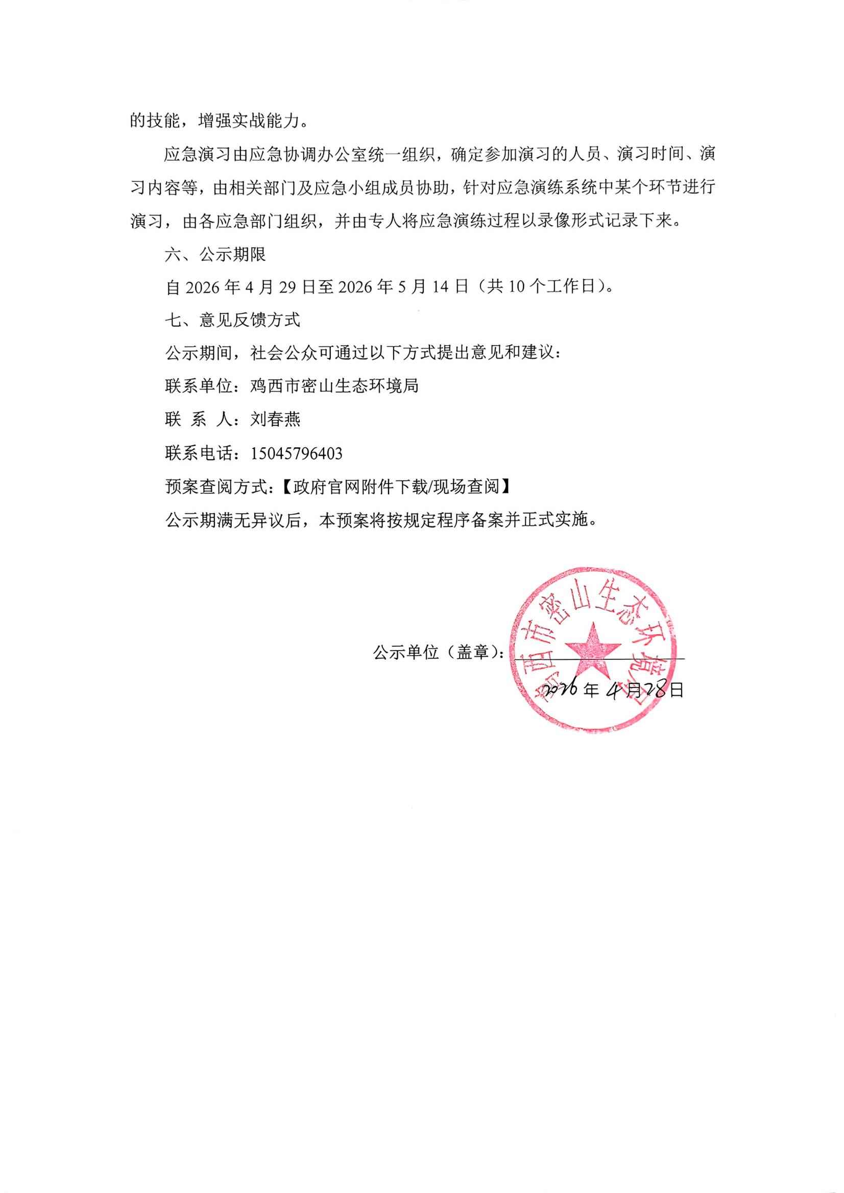 密山市乡镇级及农村级集中式饮用水水源地突发环境事件应急预案公示