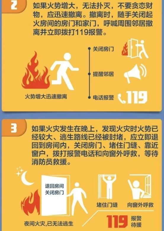 3.小火快灭,大火即逃,第一时间拨打119。