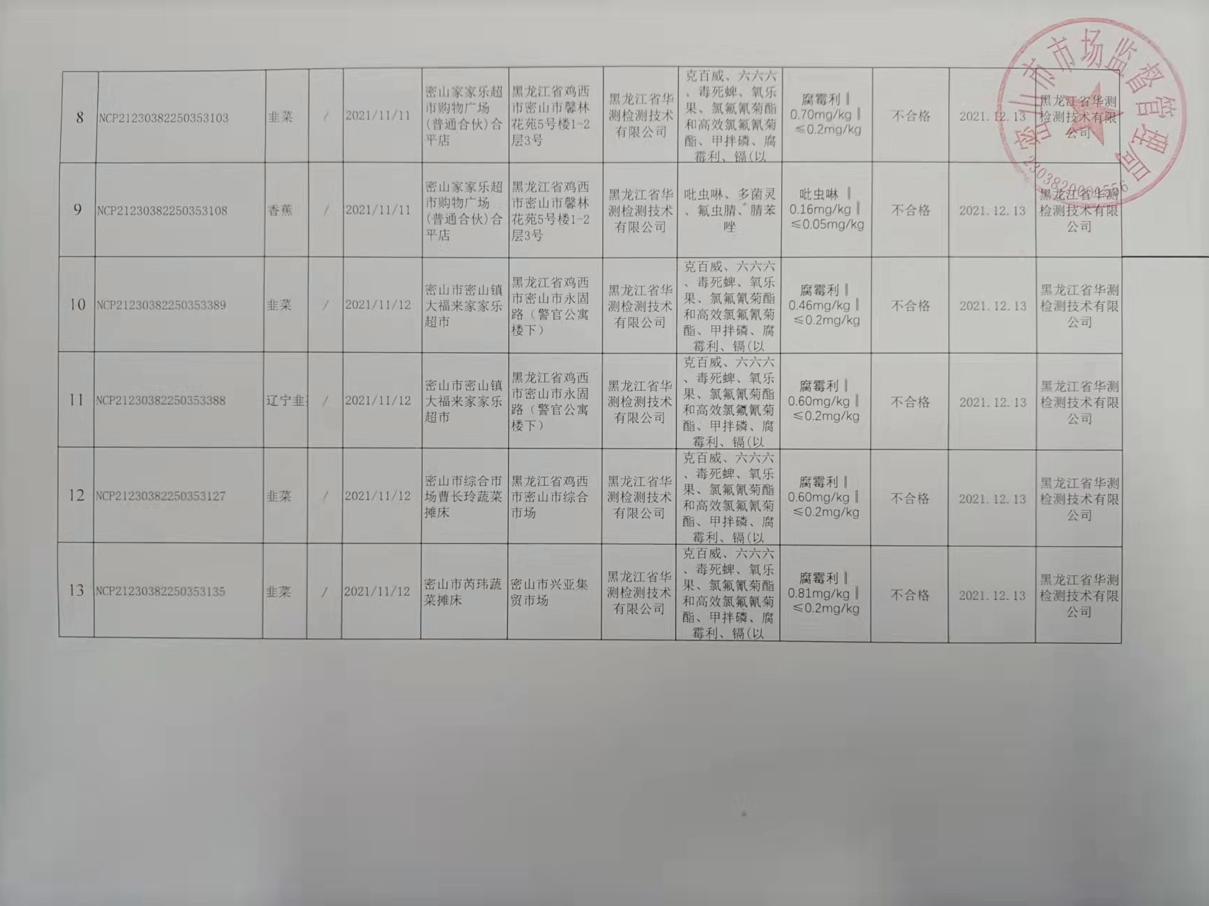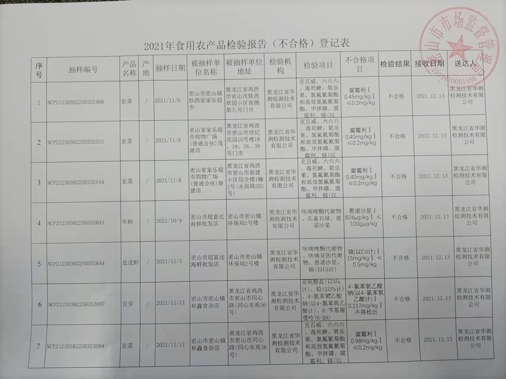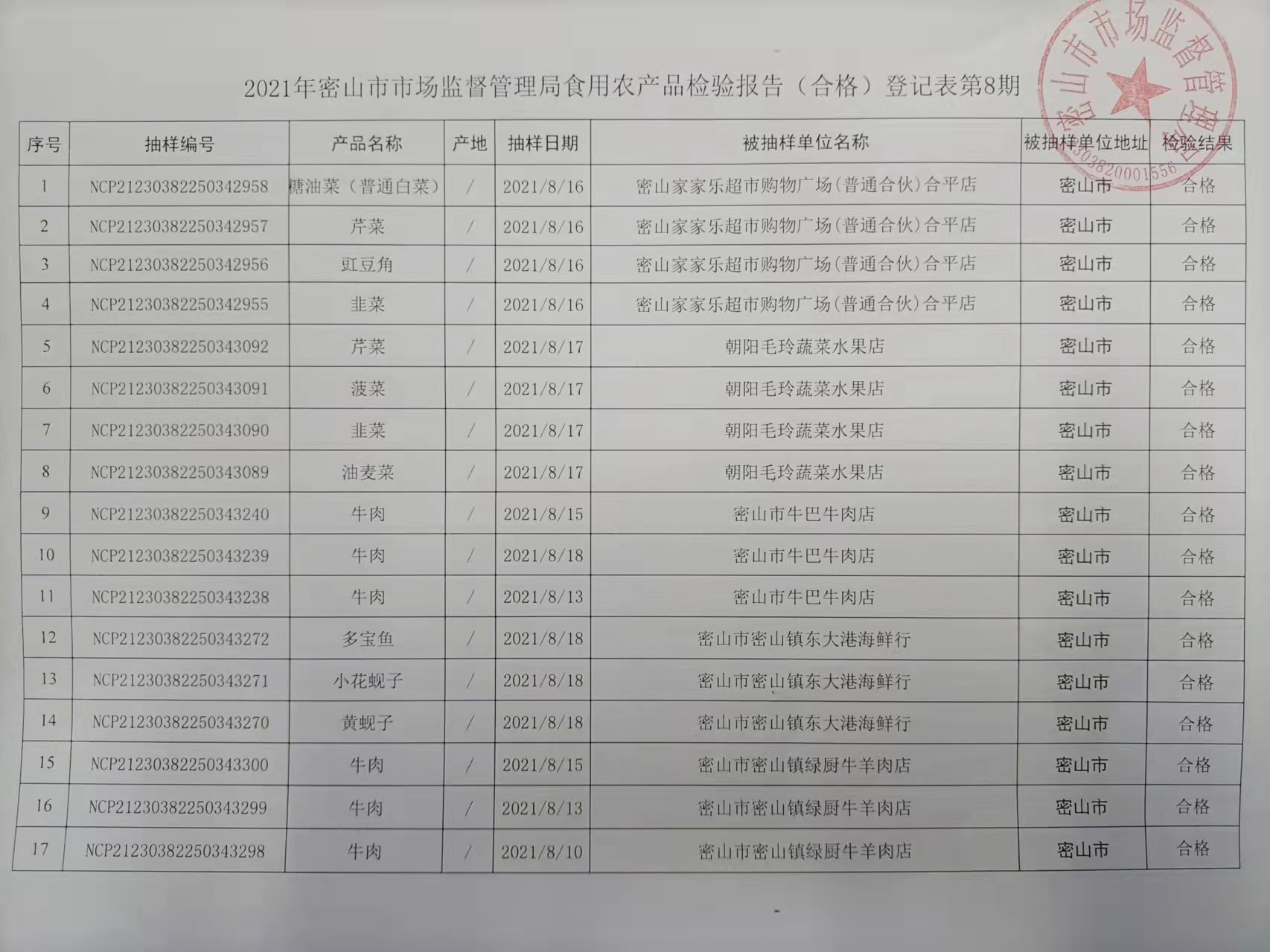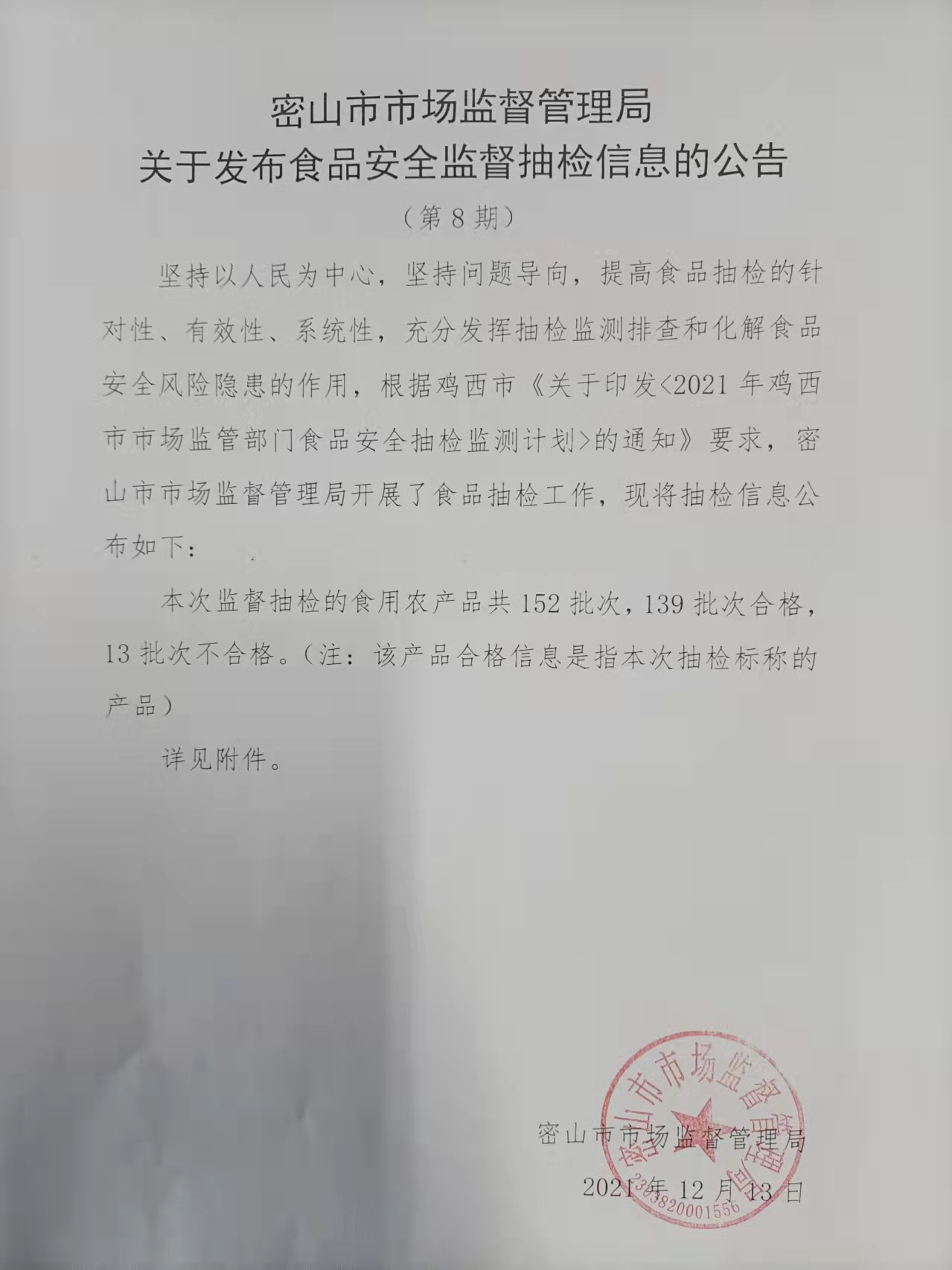 密山市场监督管理局关于市发布食品安全监督抽检信息的公告(第8期)