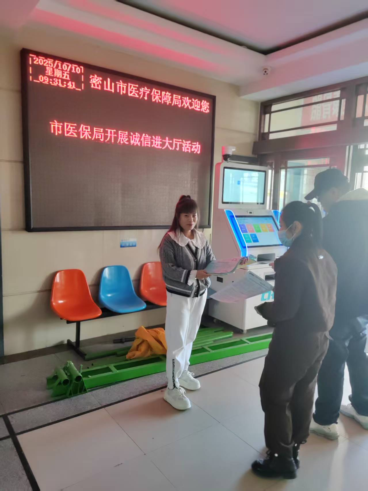 为提升群众医保服务体验,增强诚信意识,市医疗保障局开展“诚信进大厅”活动。将诚信教育与参保缴费政策宣讲相结合,为群众提供精准服务。