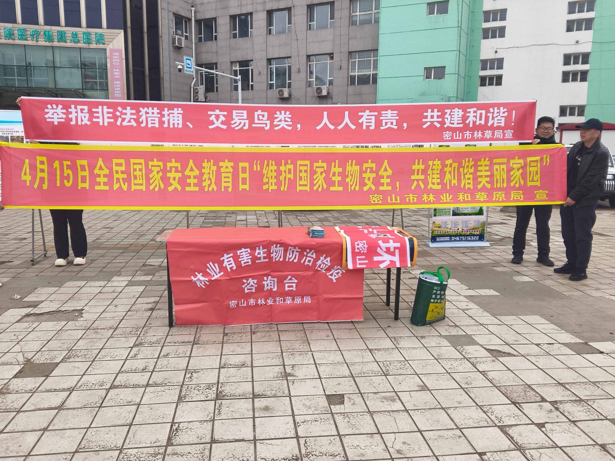 4月15日是第十一个全民国家安全教育日,为深入贯彻总体国家安全观,密山市林草局以“维护国家生物安全,共建和谐美丽家园”为主题,组织开展专题宣传活动,推动生物安全知识走进群众、深入人心,切实筑牢辖区林草生物安全防线。