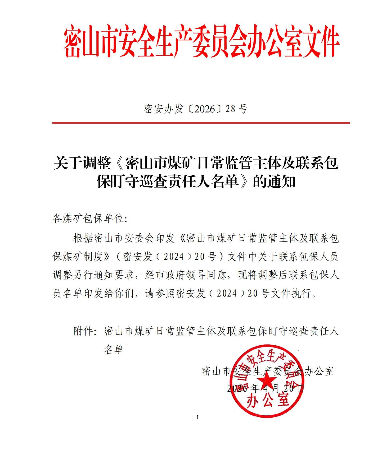 密山市煤矿日常监管主体及联系包保盯守巡查责任人名单公示